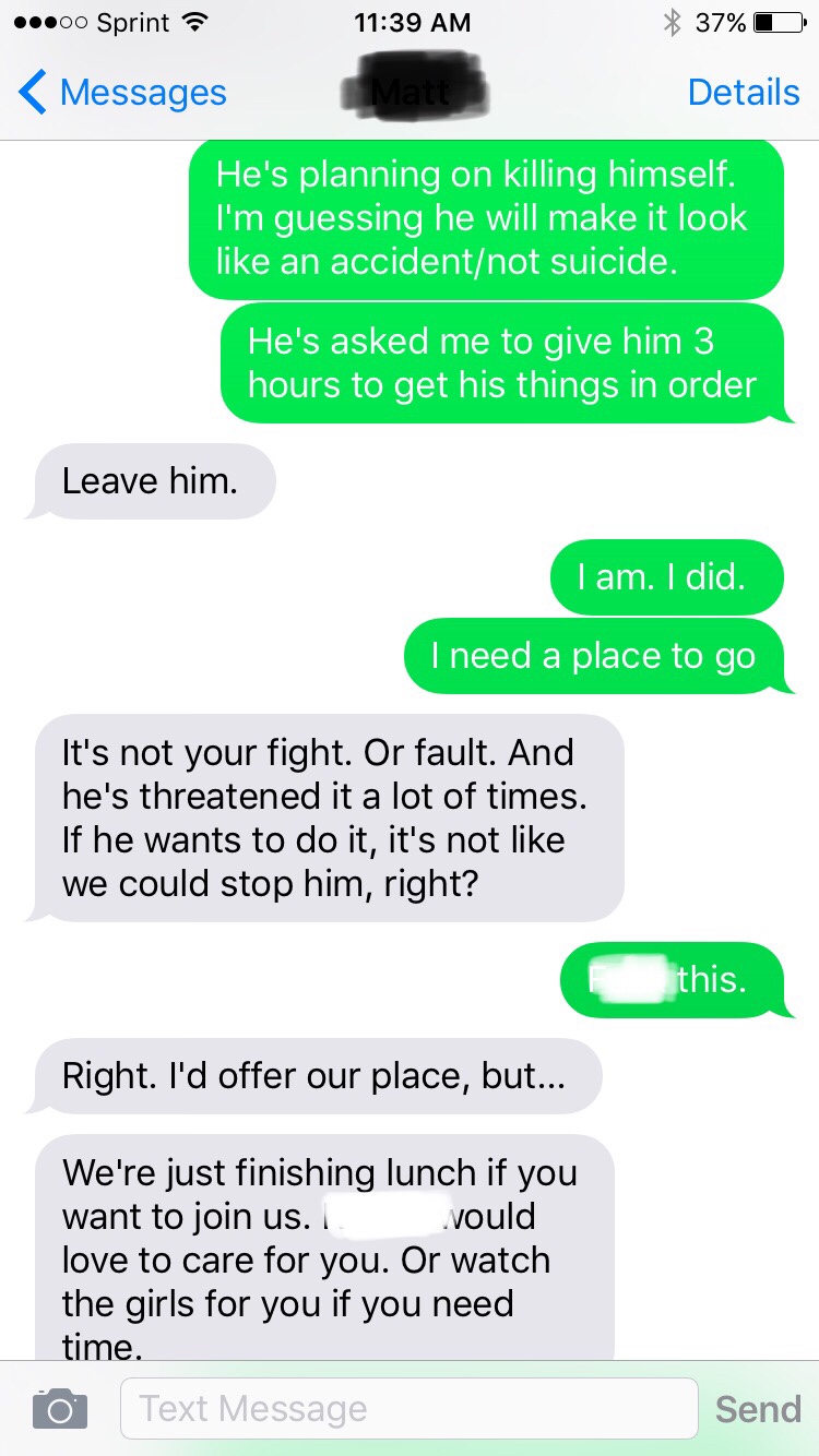 Having to stay calm, to make sure he didn’t do anything we both would regret, trying to calmly talk to a drunk man the same way you try to calmly rationalize with a child that’s feeling a little out of control and you have to keep the situation de-escalated. There’s a disconnect between what your brain and body are thinking and feeling and what you’re having to act out. Everything in you wants to scream, or run, or do SOMETHING other than be calm. But you recognize you aren’t dealing with someone who will respond to anything but calm, and anything else might cause him to… well…